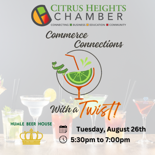 Get ready to mix, mingle, and make connections at our Commerce Connections With a Twist! This unique networking event is your chance to grow your business relationships while indulging in the flavors of our vibrant local restaurant community. This month we are at Humle Beer House located at 7086 Auburn Blvd, Ste 100, Citrus Heights.